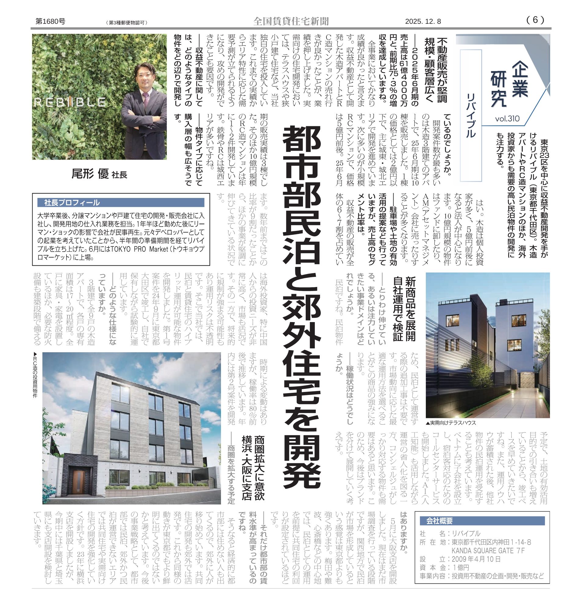 ■ 掲載概要 媒体名 :週刊 全国賃貸住宅新聞 掲載号 :2025年12月8日号 コーナー:企業研究(P6)
